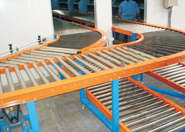 ⑤通軸式摩擦輪或傘齒輪傳動式其缺點是傳動噪音大,且安裝精度要求高制造成本亦較大。所有這些促使機械化設計人員去設計一種比以上輥子傳動結構型式的綜合性能指標更加優越,包括有積放功能、積放可靠準確、線路可水平彎曲且半徑較小、上下坡方便、可分流可合流、噪音小等,又保證結構簡單,包括積放所需電氣控制簡單、安裝方便、安裝精度要求不高、成本較低的滾筒輸送機。滾筒輸送機發展到今天,最能體現其性能優越的一個方面就在于它可以具有積放功能,可以認為可積放滾筒輸送機結構簡單的關鍵所在是輥子的傳動方式。